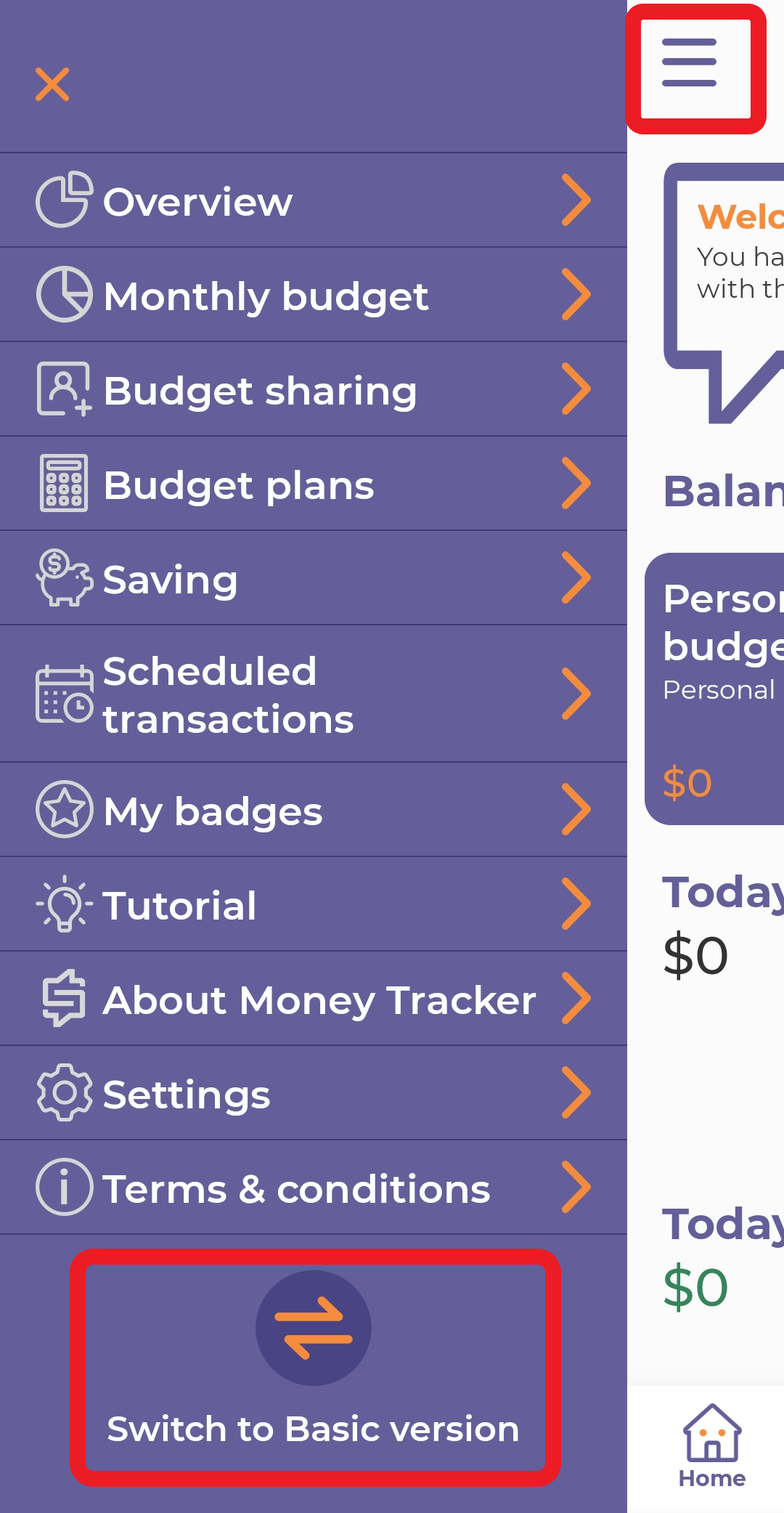 Need a simpler interface? From the app's menu, scroll to the bottom and tap "Switch to Basic version". Click here for the screenshot.