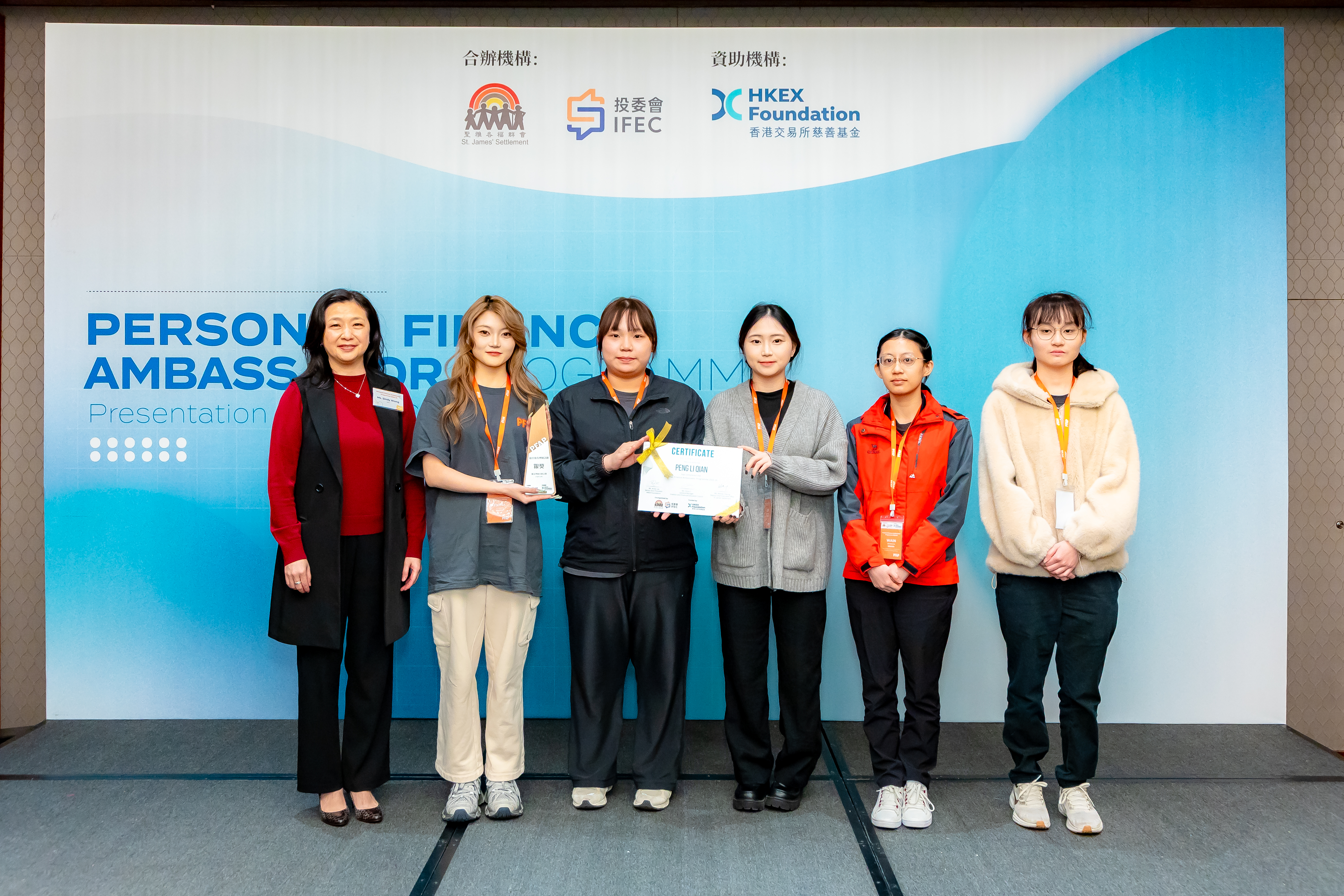 總共有14 隊個人理財大使成功完成大使計劃並獲頒大使證書,當中最佳的6隊更在2026年1月17日匯報會及嘉許禮上報告其理財教育計劃成果,及競逐優秀理財教育計劃獎項。評審團對各隊伍展現出的卓越創意與優異表現給予高度讚賞。恭喜各得獎隊伍: