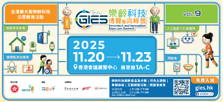 Besides, GIES provides a platform drawing together stakeholders to engage in dialogue and collaboration for broader adoption of gerontech. It further helps to drive policy changes as well as societal and economic developments in Hong Kong for meeting the challenge brought about by population ageing and disability.